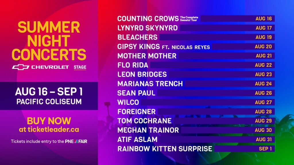 The PNE Fair’s Summer Night Concerts series is an iconic staple in the Vancouver summer experience, and this year is no exception!