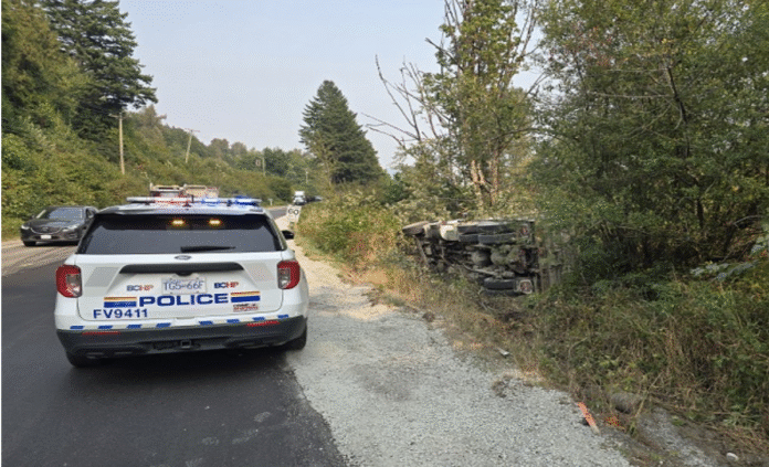 BC Highway Patrol said the incident happened around 2:30 p.m. on Thursday, Sept. 4, when the dump truck rolled into a ditch along Lougheed Highway in the Deroche area.