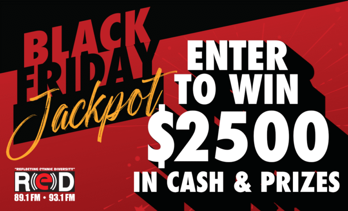 This Black Friday RED FM is giving you a chance to win $2,500 in Cash & Prizes in RED FM’s Black Friday Jackpot