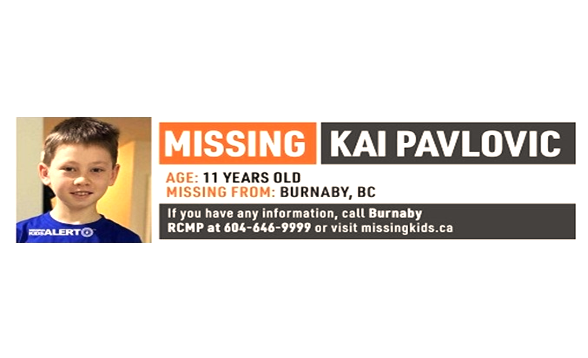 Kai is described as approximately 5 feet tall, with a slim build and brown hair. Anyone with information about his whereabouts is asked to contact Burnaby RCMP at 604-646-9999 or their local police department.
