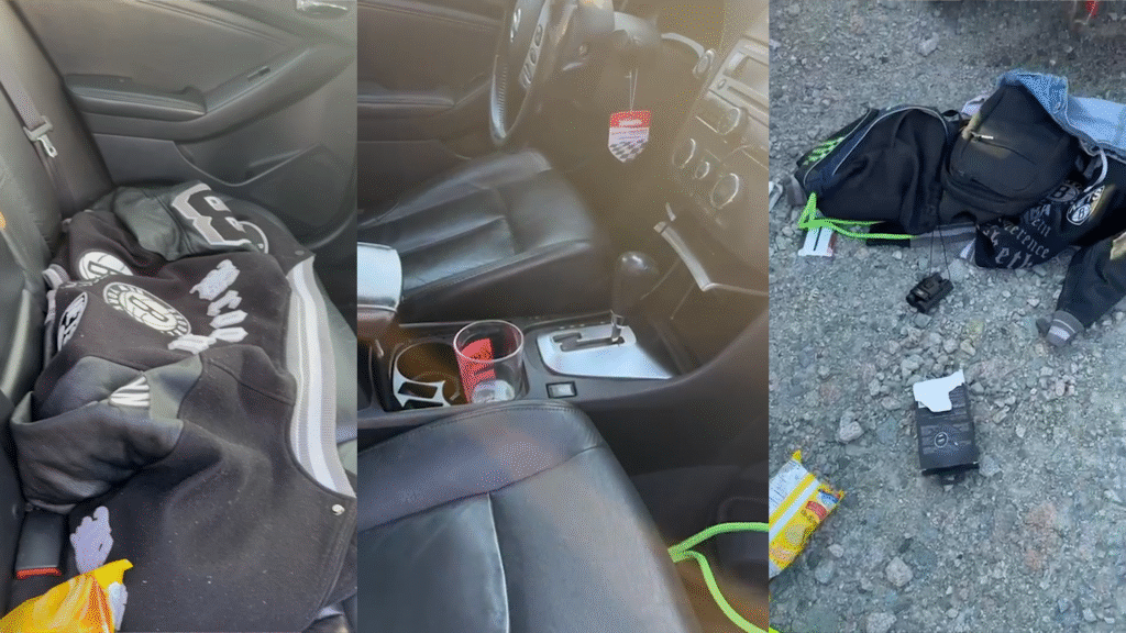 Upon arriving at the tow yard, the family was shocked to see the condition of the car and what was found inside. According to them, the vehicle contained many items that did not belong to them including, a sharp-edged knife, multiple bags of clothing and safety jacket, suspicious powdered substance, which the family believes may have been some kind of illicit drug.
