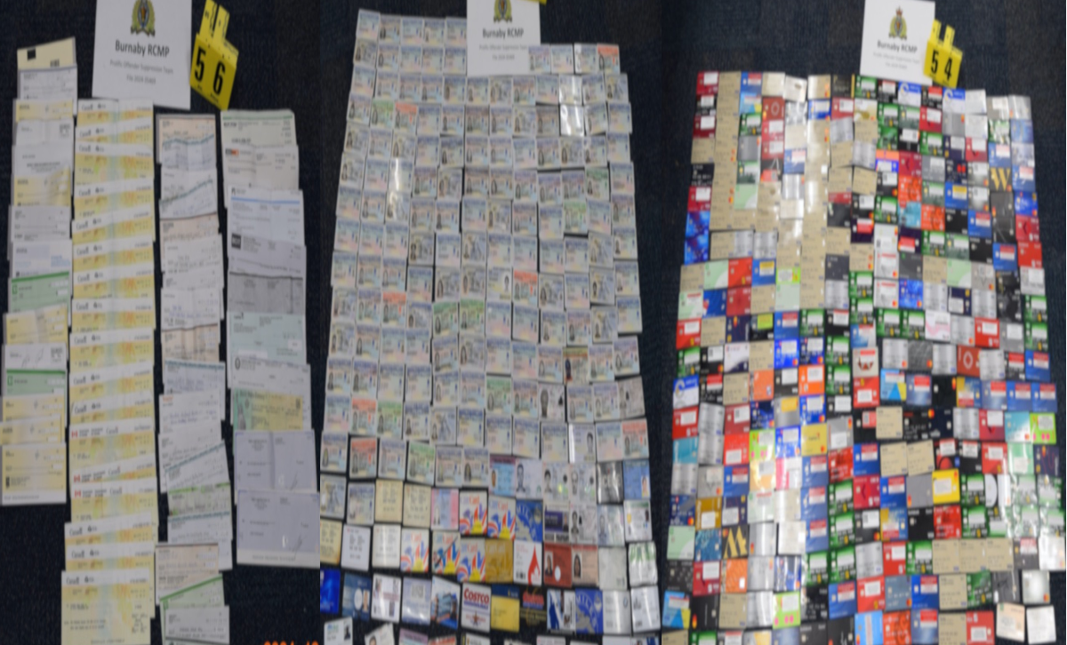 Burnaby RCMP began the investigation in October last year after two break-ins were reported at an apartment building in the city, police said in an earlier news release. In December, officers executed a search warrant that led to the seizure of 346 pieces of identification, 496 bank cards, and 576 items of mail, among other evidence.